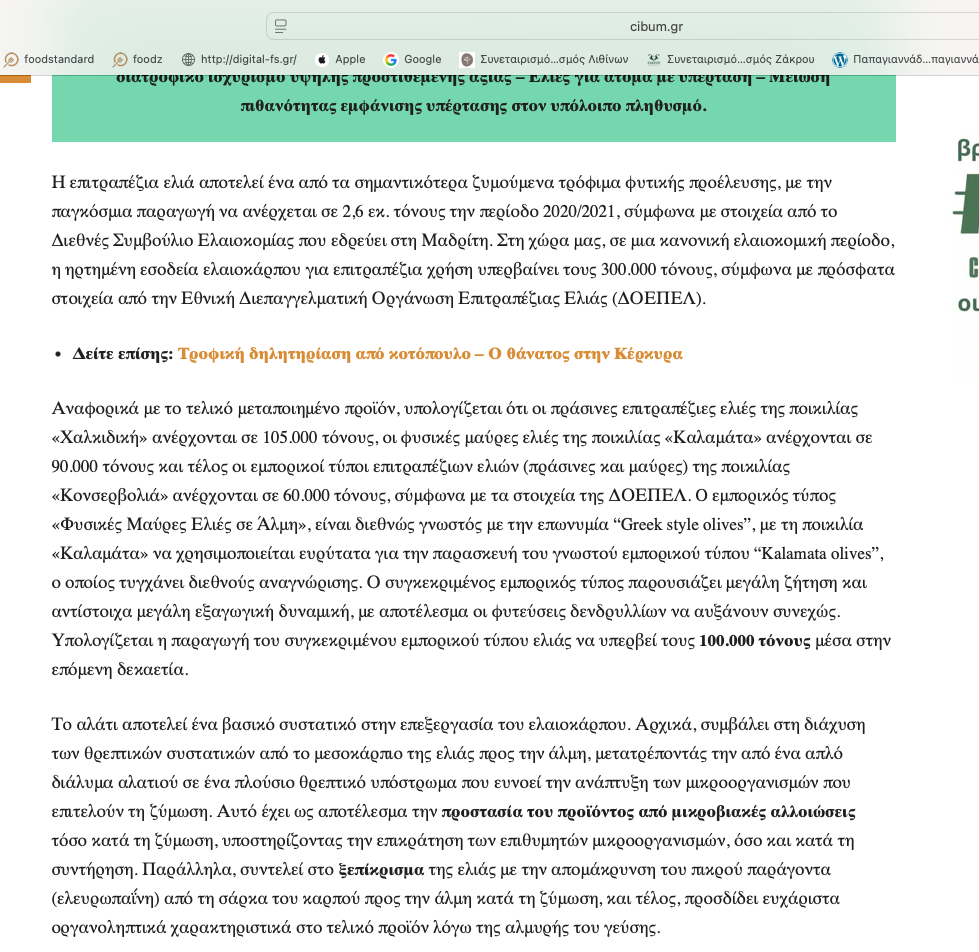 Άρθρο που δημοσιεύτηκε στο cibum.gr, αφιερωμένο στην καινοτομία του ProbioticOlives!